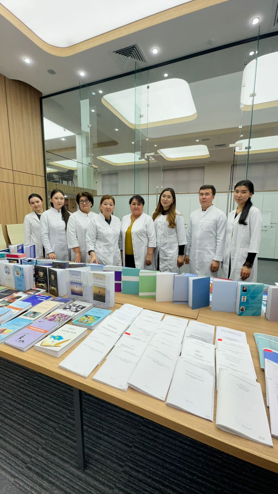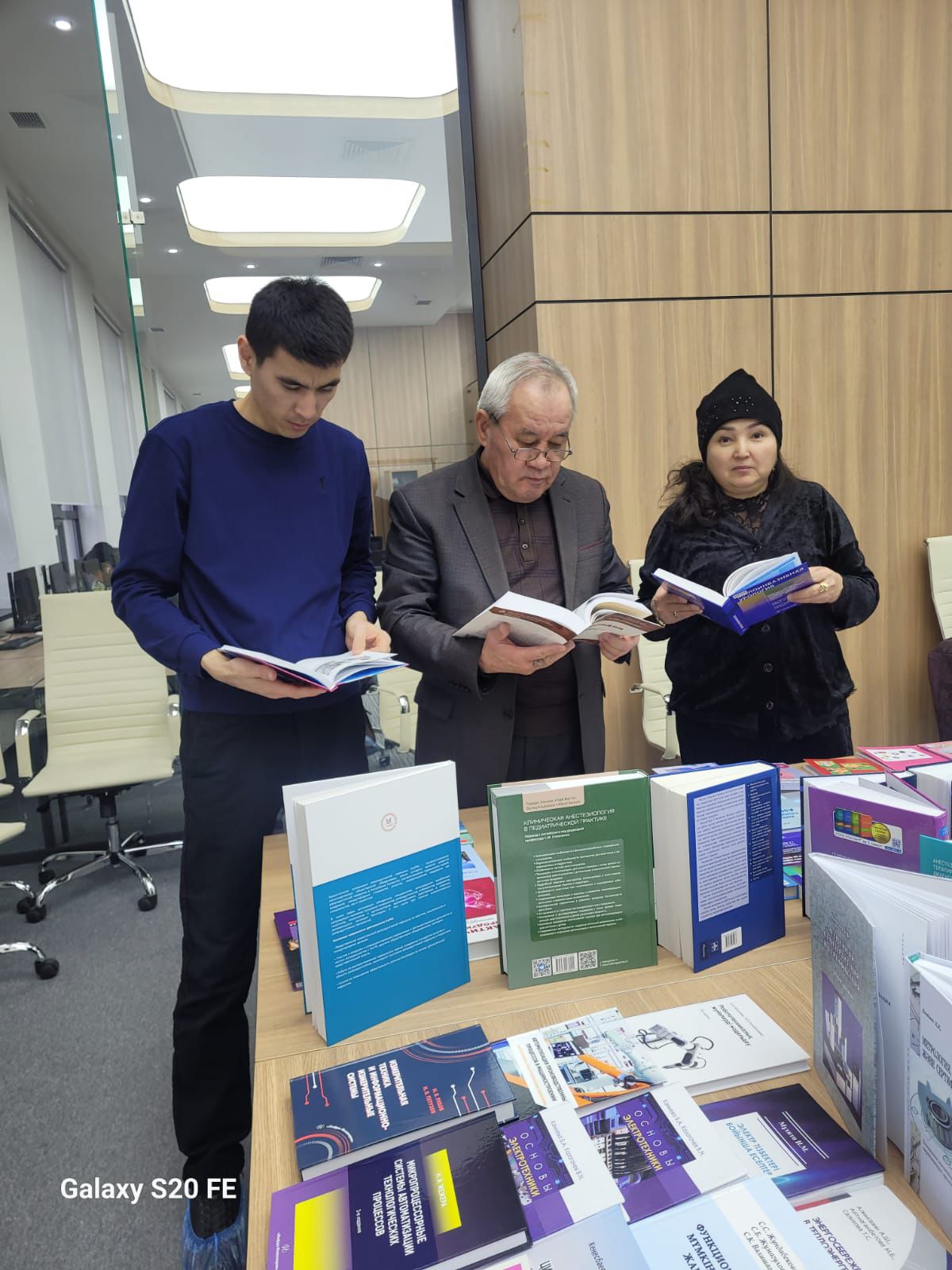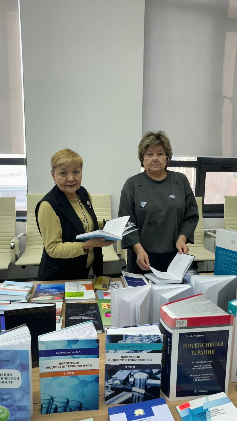 Оқырмандардың назарына қазақ, орыс және ағылшын тілдеріндегі 200-ден астам ғылыми, оқу және анықтамалық әдебиет пәндері бойынша кеңейтілген кітап көрмесі ұсынылды.